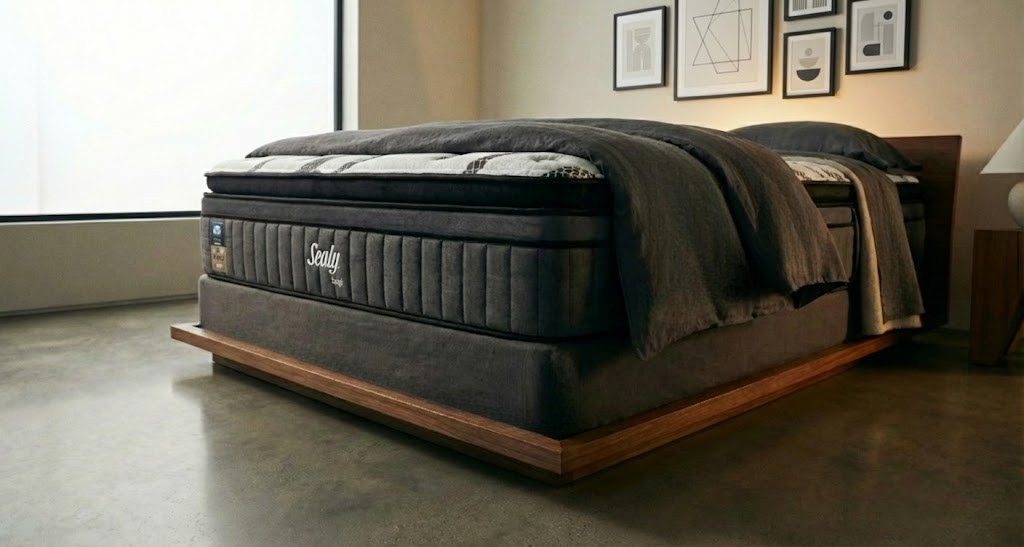 Una cama Sealy viste el espacio por sí sola. Su presencia comunica inmediatamente que, en esa habitación, el descanso se toma en serio.