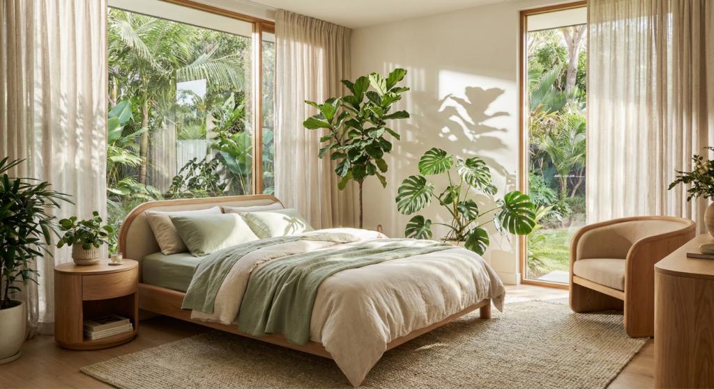• Materiales: Maderas naturales, linos y tejidos orgánicos que invitan al tacto.